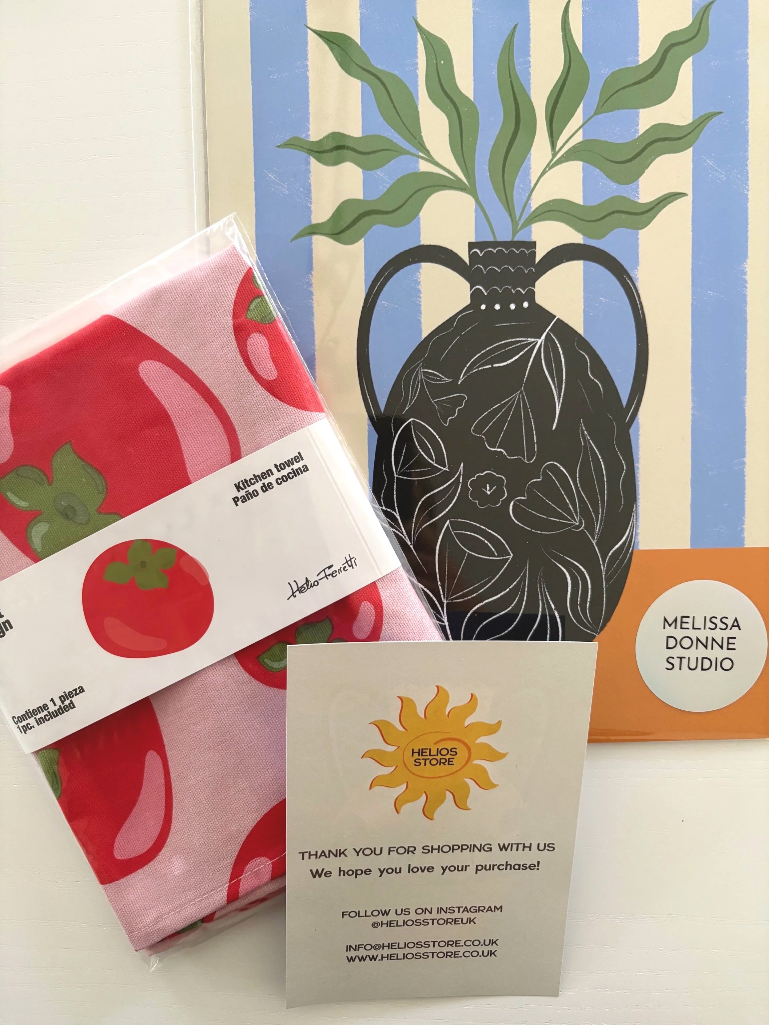 Melissa Donne Studio prints and cards are a welcome addition to Helios Store, known for their vibrant colours and playful style. Melissa aims to spread joy through her work and add a bold statement to any space. All of the products are printed in the UK using FSC-certified paper and card, and Melissa prides herself on affordable but high-quality art that will brighten your home.